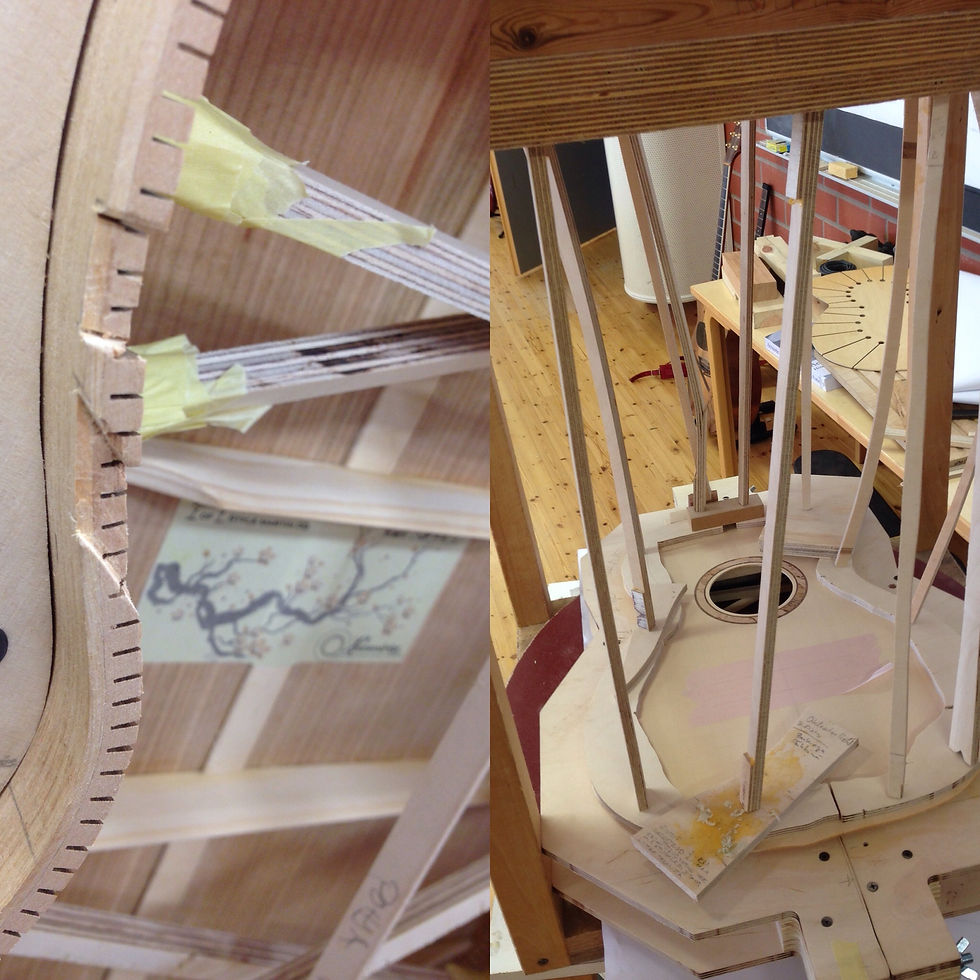 Here you can see the fitting for the top bracewoods. And so the top gets glued on.